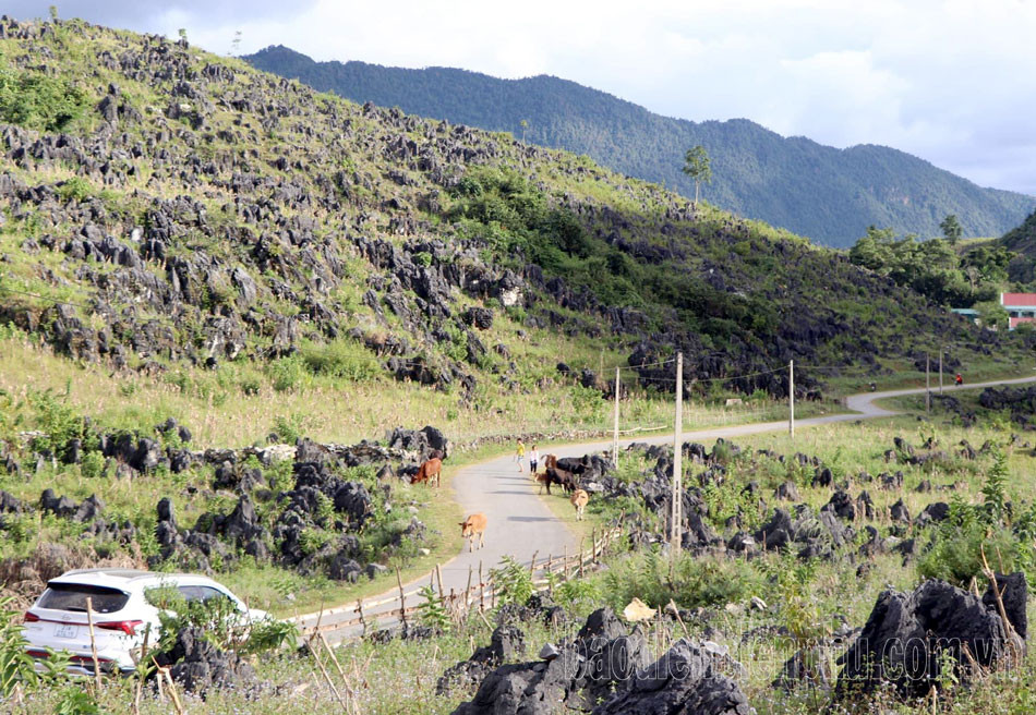 Từ trung tâm huyện Tủa Chùa, sau hơn một giờ đồng hồ di chuyển trên quãng đường khoảng 30km, cao nguyên đá Tả Phìn hiện ra trước mắt với vẻ đẹp mê hoặc. Những lớp đá tai mèo, tựa như những mũi măng khổng lồ, trải dài từ thung lũng đến đỉnh đồi, tạo nên một khung cảnh kỳ vĩ, khiến bất kỳ ai cũng phải trầm trồ. Dọc theo trục đường liên xã dài khoảng 4km, du khách sẽ được lạc vào một “rừng đá” huyền bí, nơi những phiến đá tai mèo to lớn xếp chồng nghiêng vào nhau, tầng tầng lớp lớp, hướng lên bầu trời.